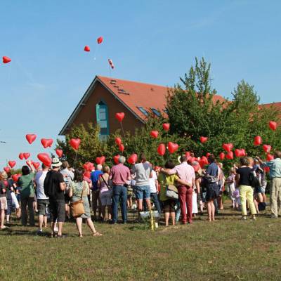 Am 18. August fand die Begegnung im Sommer statt. Hierzu kamen rund 130 Mitglieder, Freunde und Unterstützer und verweilten in sonniger Atmosphäre auf dem Gelände der Bereitschaftspolizei. Für das leibliche Wohl wurde durch den Arbeitskreis und zahlreiche Kuchen- und Salatspenden gesorgt. Auf der neu eingerichteten Vereinsmeile konnten sich die Besucher über die zahlreichen Angebote informieren. Ein Kreativ-Angebot bot Vorstandsmitglied Selina Müller an, die mit den Gästen emaillierte. Viele schöne Formen standen zur Wahl und man konnte sich ein schönes Erinnerungsstück mitnehmen. Bei der Ansprache durch die Vorsitzende Irene Heppel wurde auch die Gelegenheit genutzt mehrere Spendenschecks in Empfang zu nehmen. Dafür bedanken wir uns herzlich. Um 17 Uhr war der Moment der sehr berührend ist – das Luftballonsteigen für alle verstorbenen Kinder. Mit musikalischem Geleit flogen alle Ballons in den Himmel.