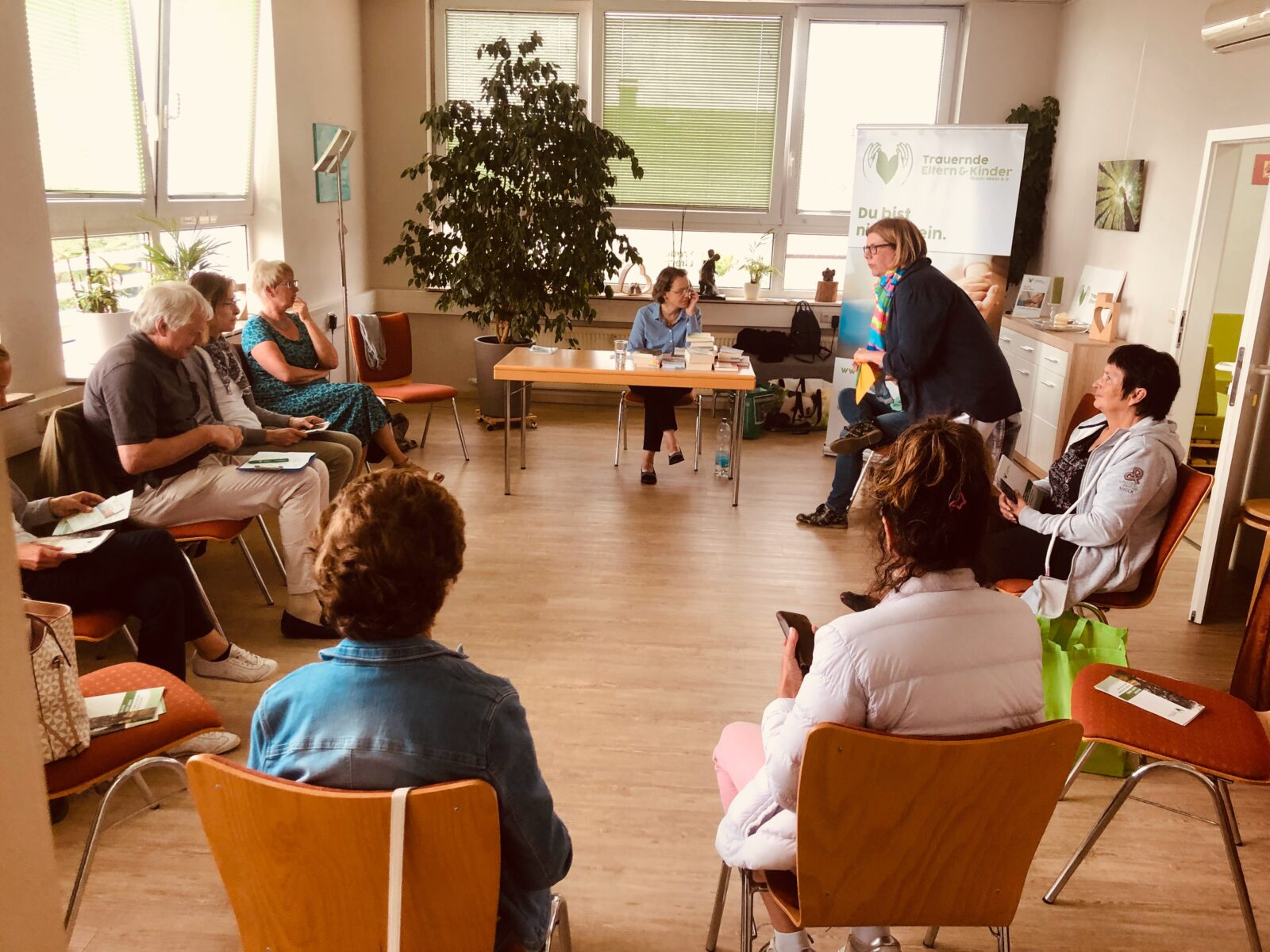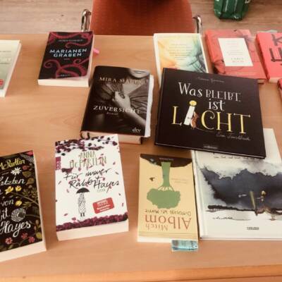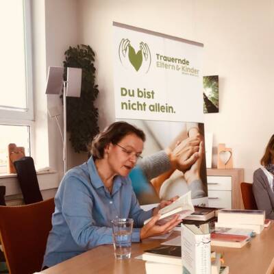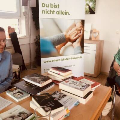 Einen sehr interessanten Auftakt hatte unser Veranstaltungsreihe Tod.Endlich.Leben am 7. Juli in unserer Geschäftsstelle. Katharina Philipp, betroffene Mutter und Buchhändlerin, stellte einige sehr besondere Bücher vor, die das Thema Verlust und Trauer zum Thema haben. Sehr interessante Romane wurden vorgestellt. Die rund 15 Teilnehmer tauschten sich im Anschluss aus und stellten auch selbstmitgebrachte Bücher vor. Die Bibliothek von Trauernde Eltern & Kinder Rhein-Main e.V. wurde im Anschluss frequentiert zum Ausleihen von Büchern. Und ja- Bücher helfen sicher gibt es verschiedene Bücher zu unterschiedlichen Phasen und Momenten der Trauer – und deshalb ist es gut, dass es so ein großes Angebot gibt.