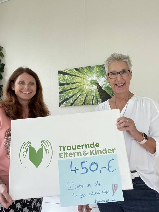 Es gibt mehr und mehr Menschen, die unseren Verein bei Facebook auswählen für eine Spendenaktion. Beispielsweise anlässlich ihres Geburtstags – so machte das auch unser Mitglied Martina Theis und es kamen großartige 450,- € Spenden zusammen. Unsere Vorsitzende Nicole Sieben lud sie zum gemeinsamen Austausch in die Geschäftsstelle ein und natürlich auch, um sich bei ihr zu bedanken für die tolle Aktion. Ein kleines Fotoshooting durfte natürlich nicht fehlen – und die beiden hatten sichtlich Spaß zusammen. Es tut gut zu sehen, wie wertschätzend die Menschen unserer Arbeit gegenüberstehen. Danke für den Besuch und den Einsatz für Trauernde Eltern & Kinder und Geschwister.