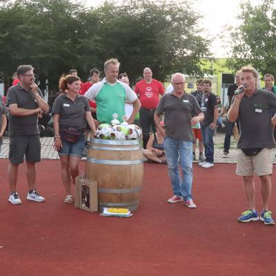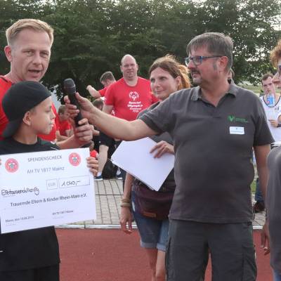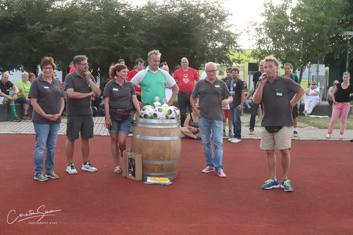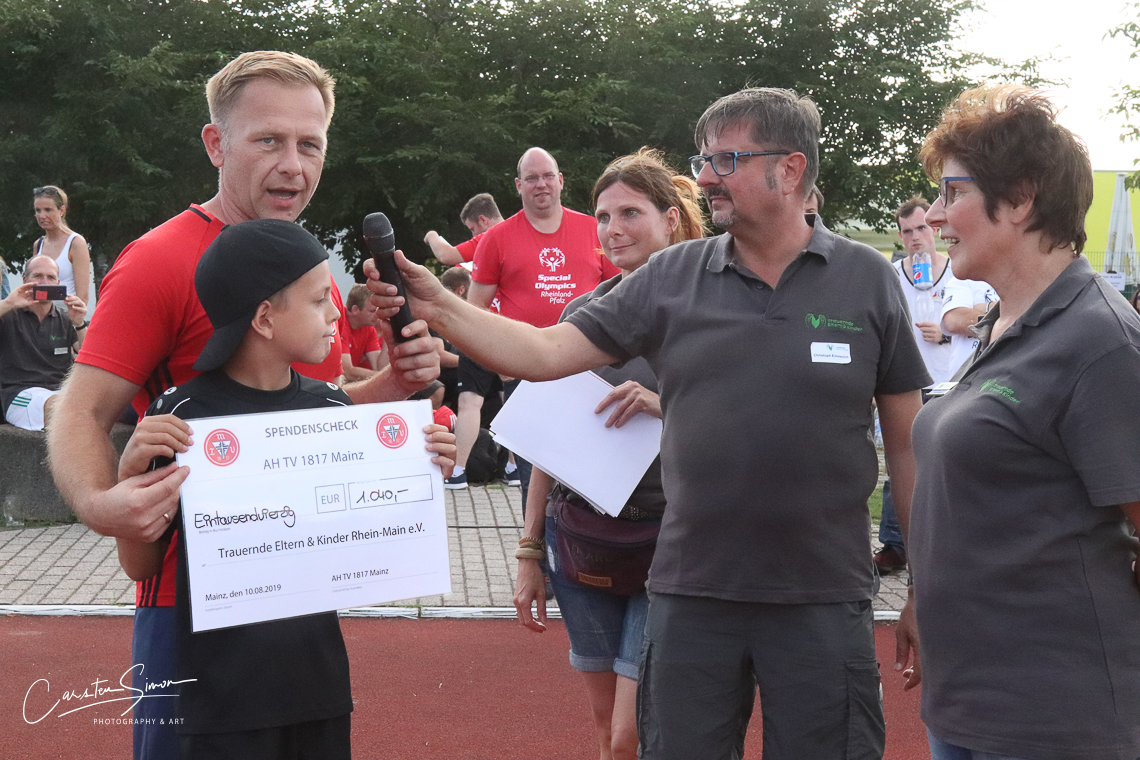 Der Gewinner des Tages war natürlich vor allem Trauernde Eltern & Kinder Rhein-Main. Um die Arbeit – der Trauerbegleitung für Eltern, Geschwister oder auch Großeltern, die einen geliebten Menschen verloren haben – ging es schließlich beim zweiten Benefizturnier des Vereins. Alle 16 teilnehmenden Teams haben mit Spenden dazu beigetragen, dass am Ende wieder ein stolzer Betrag für den Verein zusammenkam. Die Neuauflage des 2018 erstmals veranstalteten Turniers übertraf dabei die Ergebnisse des Vorjahrs alleine schon deshalb, weil fast doppelt so viele Teams am Start waren. Bei der Premiere begrenzte Turnierleiter Silvan Sieben das Feld noch auf neun Teams, in diesem Jahr traten 16 Mannschaften auf drei Plätzen gegeneinander an. Das Besondere: Es gab ein Team des VfB Bodenheim mit einem Durchschnittsalter unter 15 Jahren, genauso aber auch bunt gemischte Teams mit Männern und Frauen, Kindern und Alten Herren wie das Gastgeberteam Himmelsstürmer, Lust auf Mainz oder WIWIN, sowie das Inklusionsteam von den Special Olympics.