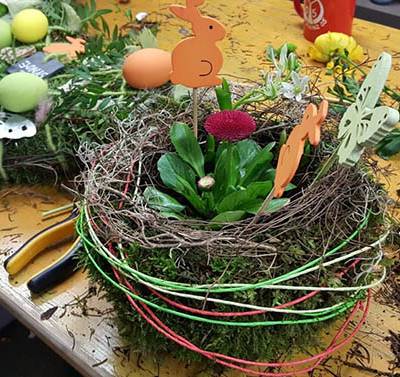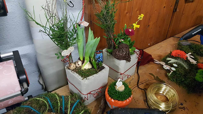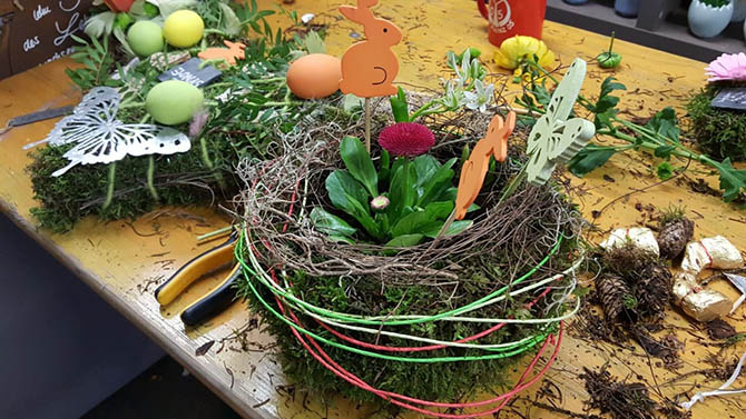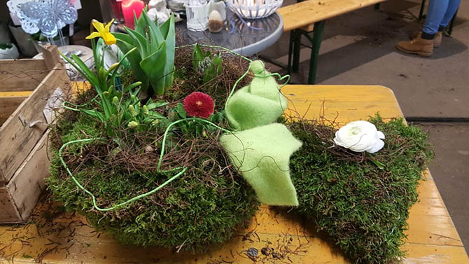 Das Seminar „Der Liebe Gestalt geben“ fand am 17.3.18 in den Räumlichkeiten der Floristin Alisa Vogt in Gau-Algesheim statt. Es wurden wunderschöne Schmuckstücke für die Gräber der Kinder gebastelt. Die Floristin die das Seminar gemeinsam mit der Trauerbegleiterin Christa Steigner begleitete, bot verschiedene Blumen und Materialien an aus denen die 10 Teilnehmerinnen kreative, liebevolle Kunstwerke für die verstorbenen Kinder oder Geschwister fertigten. Die Atmosphäre war wohltuend für die Teilnehmerinnen.