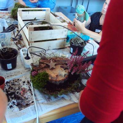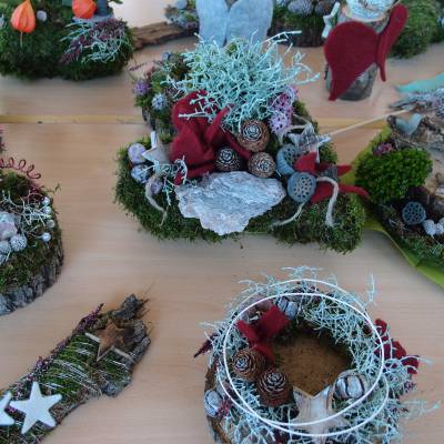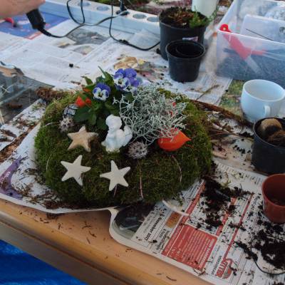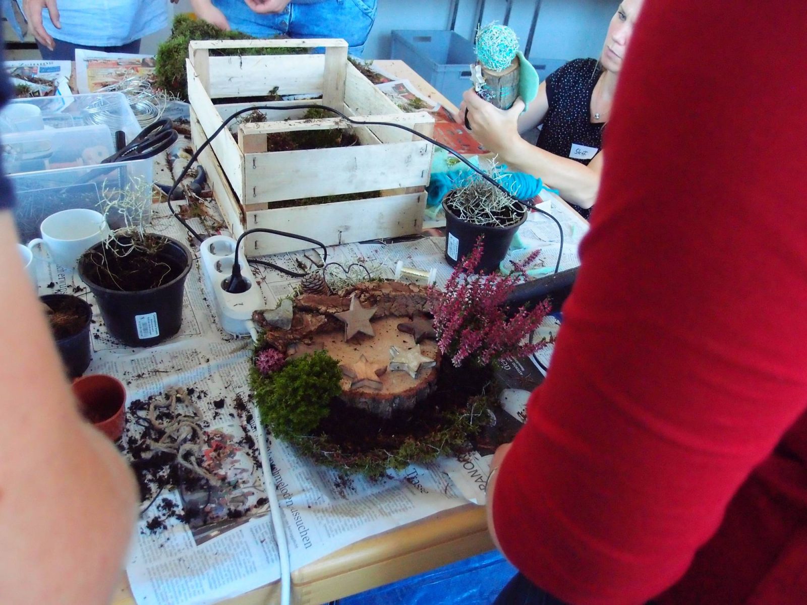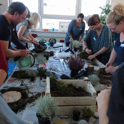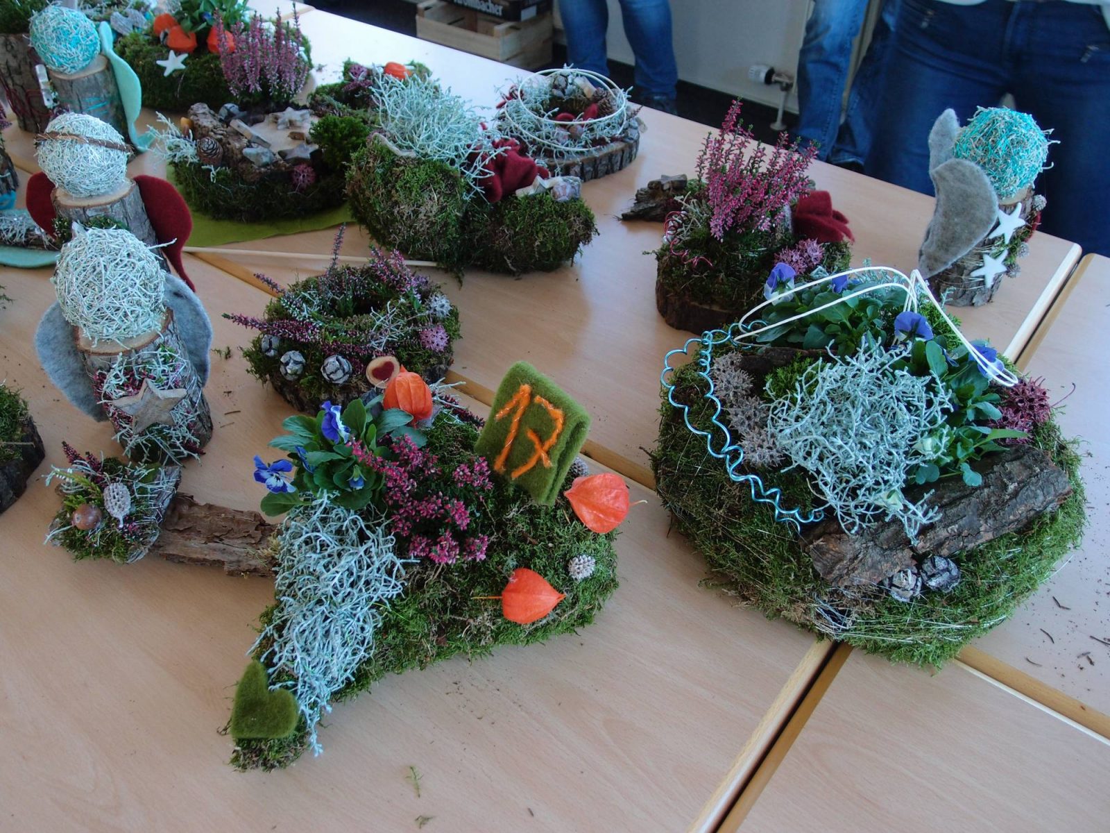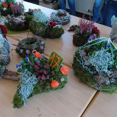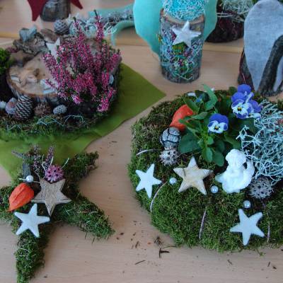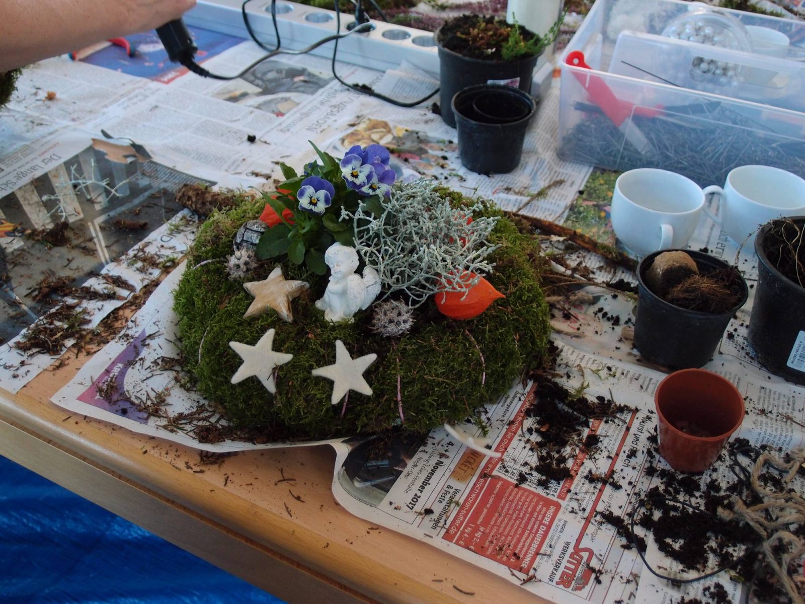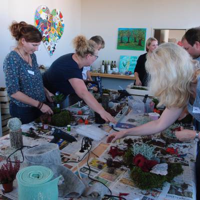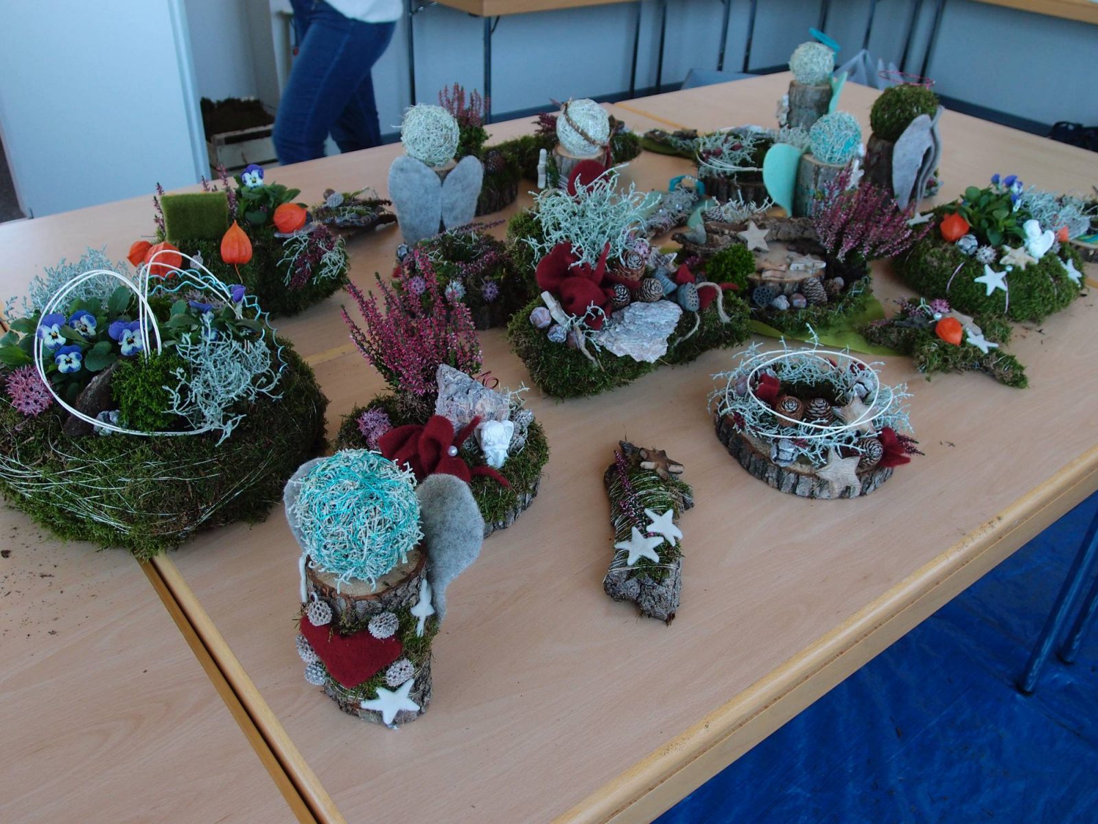 Beim Herbst-Seminar „Der Liebe Gestalt geben“ wurden wunderschöne Schmuckstücke für die Gräber der Kinder gebastelt. Zusammen mit der Gau-Algesheimer Floristin Alisa Vogt fanden sich 10 Teilnehmerinnen und Teilnehmer die in den Räumen der Geschäftsstelle von 13 Uhr bis 16 Uhr sich ganz ihrer Kreativität widmen konnten. Alisa Vogt hatte viele Materialen zusammengestellt, von Moos über kleine Hornveilchen, Erikapflänzchen und verschiedenerlei Dekomaterialen wie Baumrinden und Stoffe. Es war eine wohltuende Atmospähre spürbar. Vielen Dank allen Teilnehmerinnen und Teilnehmer, an Alisa Vogt und natürlich die begleitende Trauerbegleiterin Christa Steigner für diesen Nachmittag.