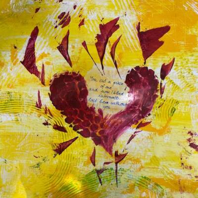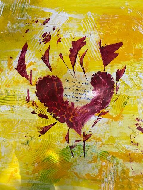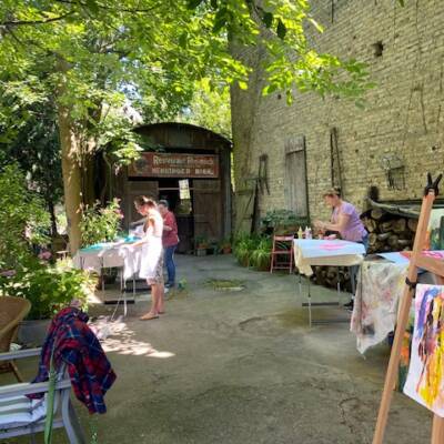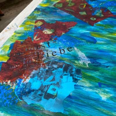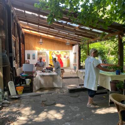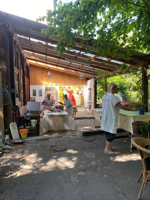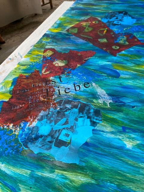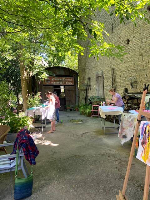 hatten grossartiges Wetter sowie liebevolle und sehr leckere Bewirtung in den Pausen. Die lästigen Schnaken und Wespen waren schnell vergessen. In vertrauensvollem Rahmen konnten alle Teilnehmerinnen sich der abstrakten Kunst nähern. Die verstorbenen Kinder waren dabei und es sind sehr persönliche und tolle Werke entstanden, die ganz sicher ihren Platz finden werden.