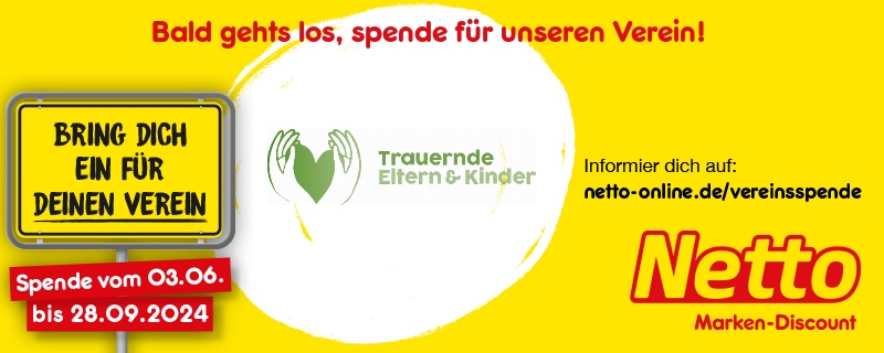 Im Zeitraum vom 03.06.-28.09.2024 kannst du vor Ort durch Pfandspende oder Aufrunden an der Kasse für Trauernde Eltern & Kinder Rhein Main spenden.