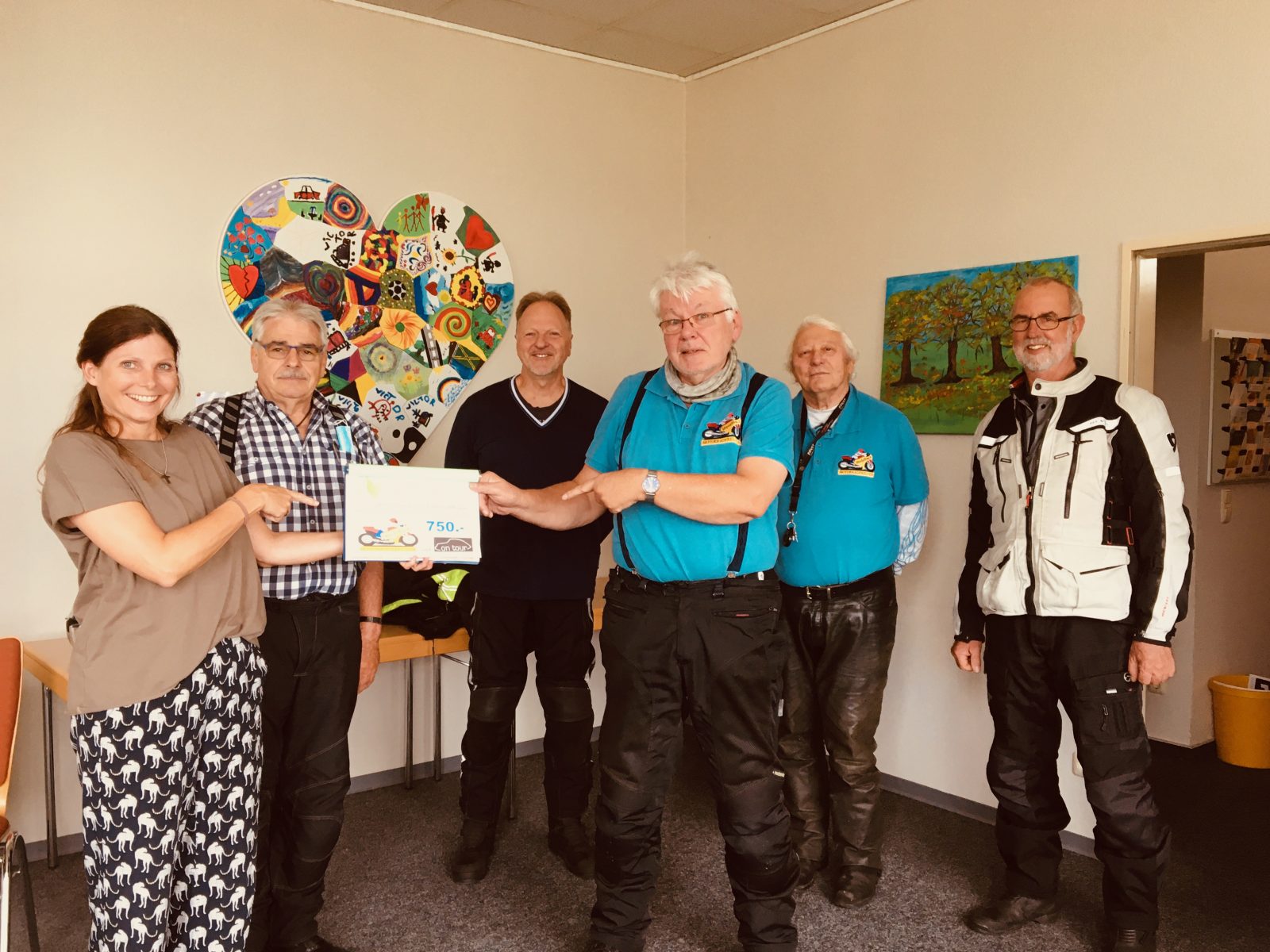 Herr Bettendorf, Initiator des Treffens in Mainz, sagte „Ich bin jedes Jahr froh, wenn keine Unfälle in unserem Kreis passiert sind – und umso wichtiger finden wir die Arbeit von Trauernde Eltern & Kinder Rhein-Main e.V. und wollen diese auch in den nächsten Jahren weiter unterstützen“. Er überbrachte mit 4 Kollegen eine gestaltete Spendenmappe in der die 750,- € enthalten waren und überreichte diese der Vorsitzenden Nicole Sieben, die gemeinsam mit Vorstandsmitglied Claudia Schmitt die Riedelbacher Motorradfreunde in der Geschäftsstelle begrüsste. Herzlichen Dank an dieses Engagement!