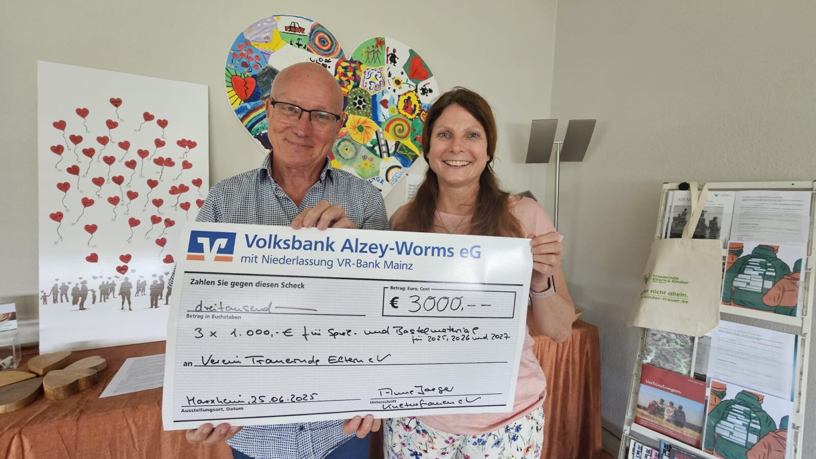 Im Rahmen des Besuchs wurde eine großzügige Spende überreicht: Für die nächsten drei Jahre wird unsere Arbeit jährlich mit 1.000 Euro durch die Kulturfrauen Bodenheim e.V. unterstützt. Die Spende ist speziell für Bastelmaterial bestimmt, das in unseren Kinder- und Jugendtrauergruppen zum Einsatz kommt.