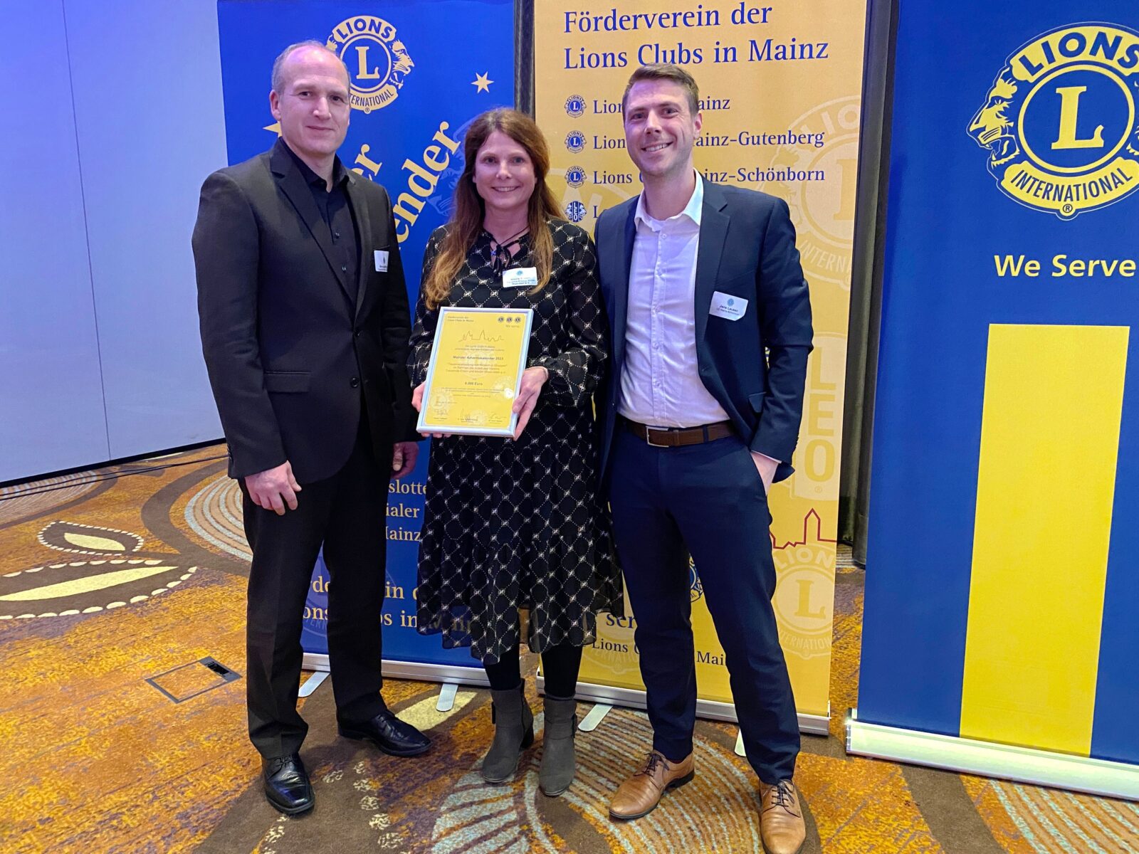 Text: N. Sieben Bild: Förderverein der Lions Clubs in Mainz (v.l.n.r.: Marcus Michel, Nicole Sieben, Dr. Jens Lausen)
