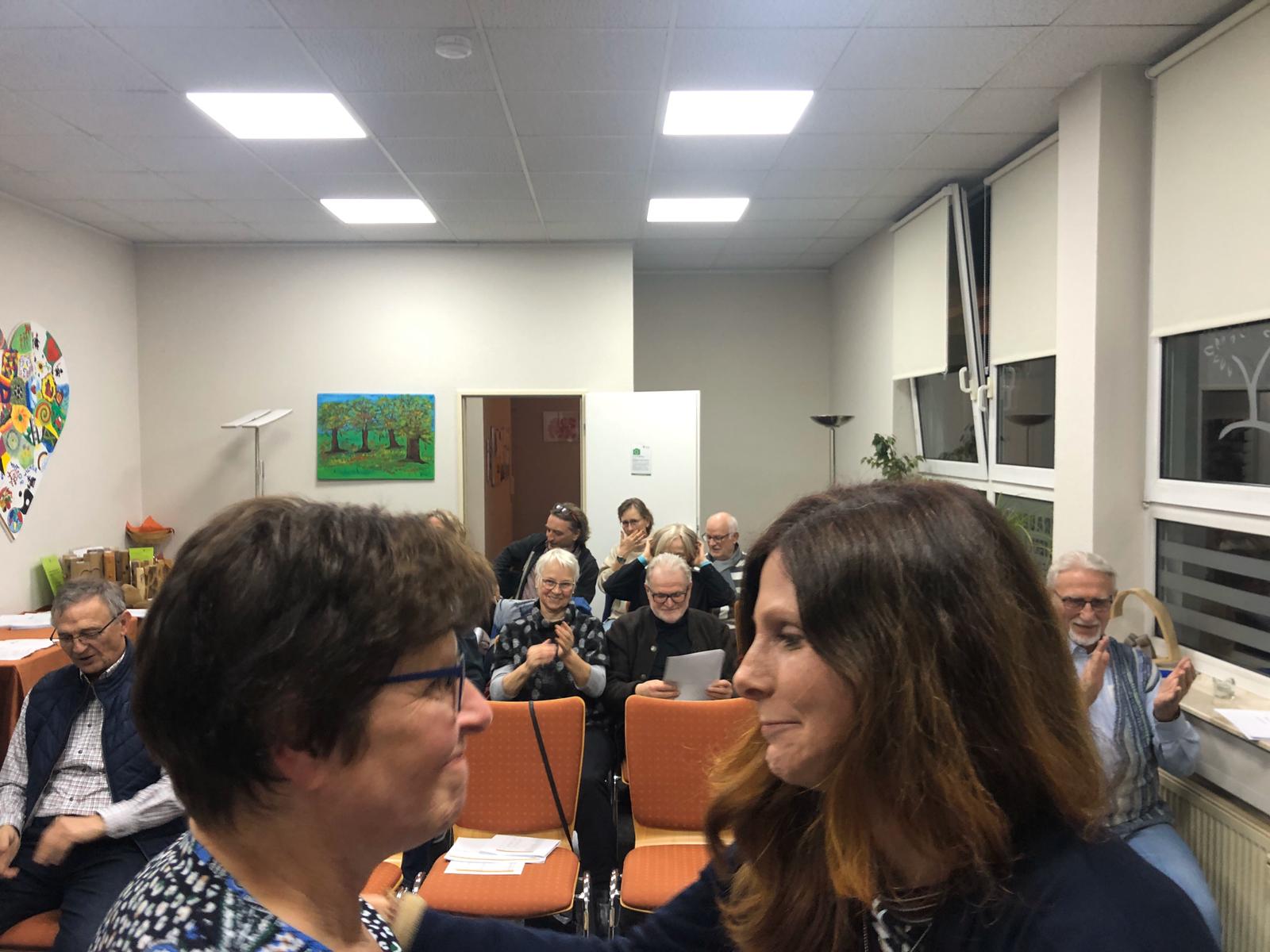 Am Freitag fand die jährliche Mitgliederversammlung in unserer Geschäftstelle statt. Neben den üblichen Tagesordnungspunkten waren Neuwahlen aller Vorstandsmitglieder vorgesehen. Irene Heppel, 10 Jahre erfolgreiche Vorsitzende, hatte bereits im Vorfeld angekündigt nicht mehr zu kandidieren wie auch unser langjähriger Beisitzer Gisbert Heppel. Unser stellvertetender Vorsitzender Daniel Meuren verabschiedete die „Heppels“ mit bewegenden Worten. Er erinnerte daran, dass Irene Heppel in ihren insgesamt 15 Jahren als Mitglied des Vorstands mit den jeweiligen Vorstandskollegen dazu beitrug, ein gesundes finanzielles Fundament für unseren Verein zu errichten. Dafür steht auch der Jahresabschluss für das vergangene Jahr mit einem leichten Überschuss durch eine unerwartet erfreuliche Entwicklung bei den Spenden. Der Überschuss wird zur Stärkung einer Rücklage verwendet, die dem fast ausnahmslos auf Spenden angewiesenen Verein Sicherheit für etwas magerere Jahre gewährt. Diese Absicherung war für Irene Heppel stets ein Ziel ihrer Arbeit.