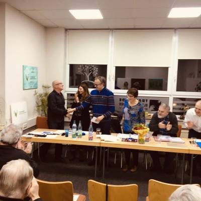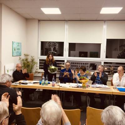 Nach dem Abschied folgt auch ein Willkommen – dem neuen Vorstand, der neu gewählt wurde. Als neue Vorsitzende kandidierte die seit 2016 als Beisitzerin im Vorstand tätige Nicole Sieben, die von den Mitgliedern einstimmig gewählt wurde. Zur Wiederwahl standen die beiden stellvertretenden Vorsitzenden Dr. Wolfgang Book und Daniel Meuren, der Schriftführer Peter Baumann sowie der Kassenwart Peter Wolf sowie die Beisitzer Tanja Klier und Marcus Michel. Als neue Beisitzerin kandidierte Claudia Schmitt. Alle Positionen wurden einstimmig gewählt. Herzlichen Glückwunsch an den neuen Vorstand und ein gutes Gelingen der wichtigen Arbeit für die nächsten zwei Jahre.