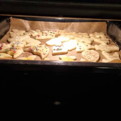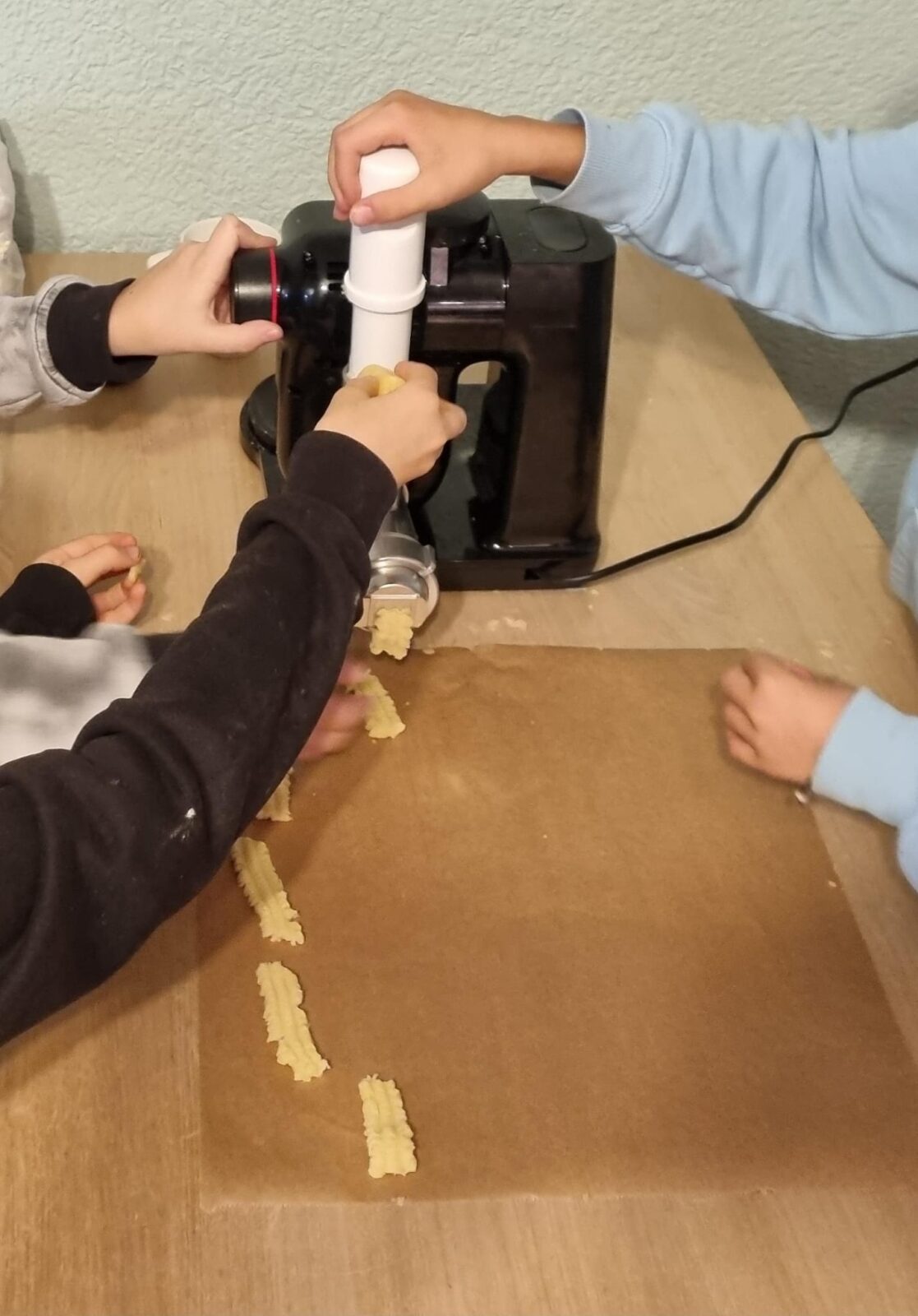 Diesmal gab es Schoko- und Butterplätzchen sowie Spritzgebäck. Ein Highlight war die neue Küchenmaschine, mit der der Teig im Nu geknetet war. Da diese gleichzeitig auch für das Spritzgebäck genutzt werden konnte, machte es besonders viel Spaß und die Bleche füllten sich schnell. Alle Plätzchen wurden außerdem mit viel Liebe und Kreativität mit Glitzerstreuseln, Sternen und Schokoguss dekoriert.