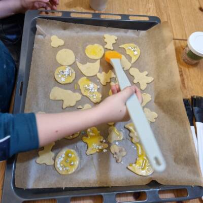 Die Jahresabschlusstreffen der Kindertrauergruppen sind immer etwas ganz Besonderes. Die Kinder und Jugendlichen treffen sich an diesen Nachmittagen länger als regulär und backen gemeinsam Weihnachtsplätzchen. So können alle in der stressigen und für trauernde Familien oft besonders anstrengenden und emotionalen Vorweihnachtszeit nochmal zusammenkommen und das Jahr gemeinsam ausklingen lassen. Während geknetet, ausgerollt und bestrichen wird, gibt es Raum für Gespräche, Austausch und Erinnerungen. Aber auch Ausgelassenheit und Vorfreude auf Weihnachten gehören dazu.