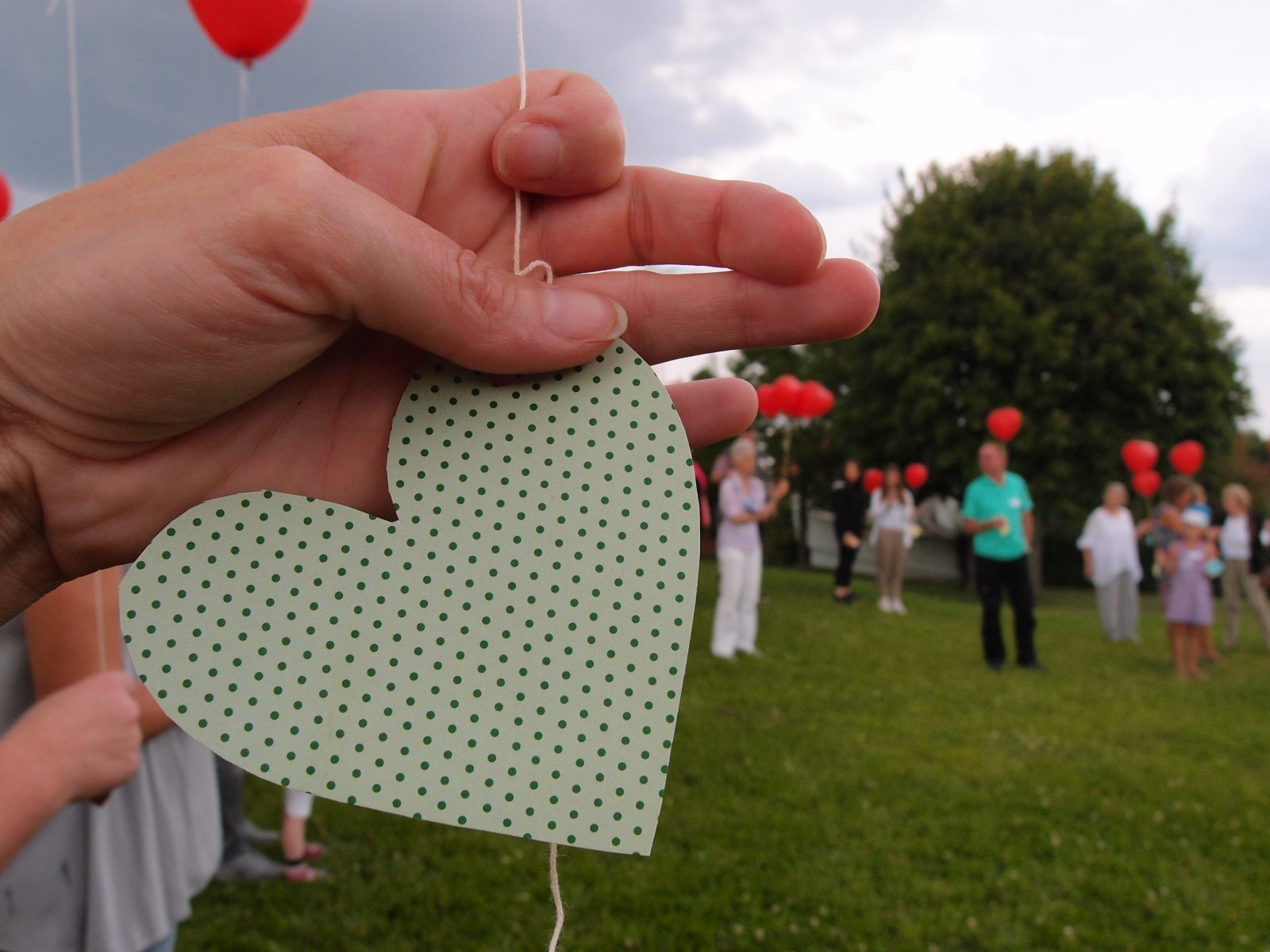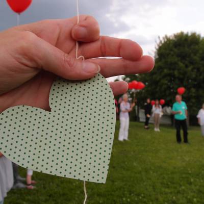 Einer der bewegendsten Momenten des Tages war das Luftballon Steigen lassen – versehen mit einem Gruß an das verstorbene Kind oder Eltern oder Geschwister liessen alle die dabeisein wollten um 16 Uhr ihre Herzballons gen Himmel steigen…. zum ankommen dort bei denen die uns vorausgegangen sind…