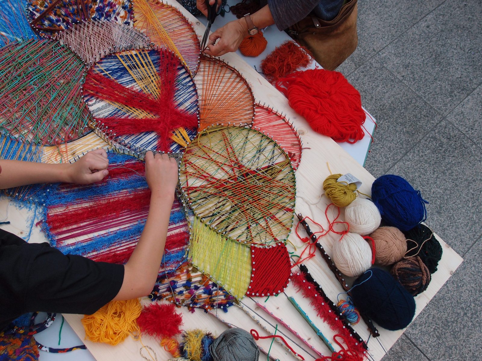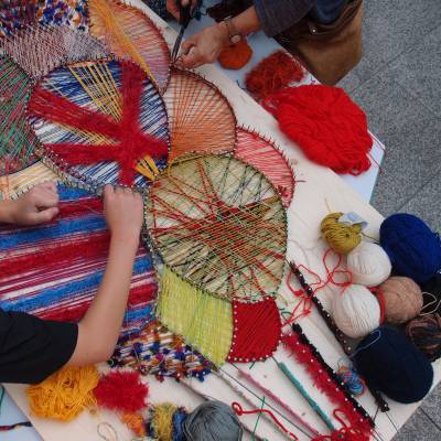 Weiterhin wurde in Gemeinschaftsarbeit ein Nagelbild erstellt – mit den Motiven von steigenden Luftballons – und jeder Besucher der wollte, konnte sich mit Faden in verschiedensten Farben „ans Werk“ machen.