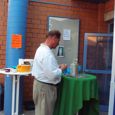 Joachim Kreutz, der Bildhauer der jedes Jahr unser Seminar-Angebot „Stein und Trauer“ unterstützt, erarbeitete mit den Gästen eine „Bronze Statue“ – für einen Sternengarten.